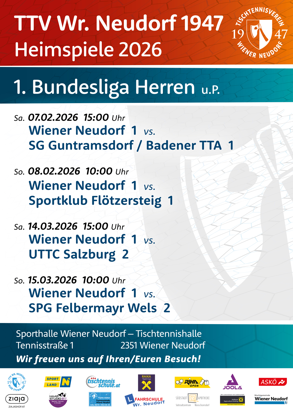 allgemeine Auskünfte: office@ttvwn1947.at oder 0676 524 7815